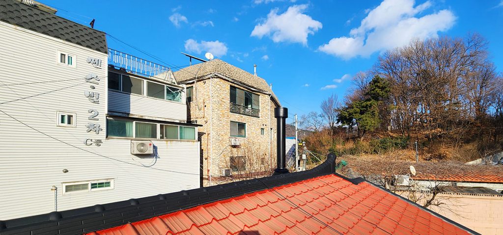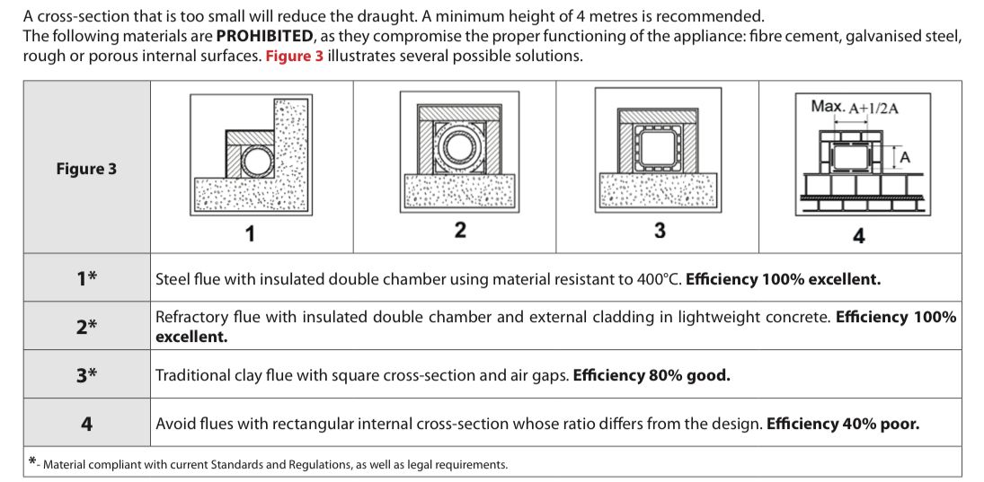 - Kare kesitli ve hava boşluklu geleneksel kil baca. Verim %80 iyi.
