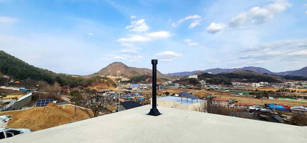 - Hafif betondan yapılmış yalıtımlı çift bölmeli ve dış kaplamalı refrakter baca. Verimlilik %100 mükemmel.