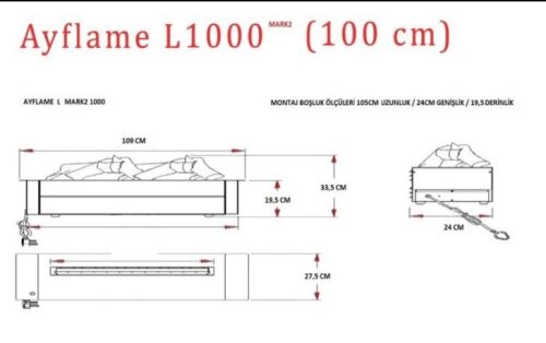 Ayflame 100 cm 3 Boyutlu Elektrikli Şömine (Isısız, Ses Efektli)