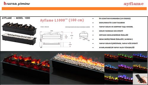 Ayflame, 3 Boytlu elektrikli şömine ister odun, ister taş görseli ile kullanılabilir. 8 Farklı alev rengi seçeneği ile evinize en uygun görseli yakalayabilirsiniz.