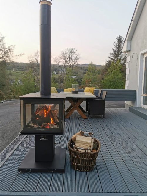 “Outdoor 4D” odun yakıtlı şöminenin en önemli özelliklerinden biri dört boyutlu tasarımıdır. Bu, alevin birçok açıdan görülebilmesini sağlayan ve benzersiz bir görsel çekicilik sağlayan dört tarafında açıklıklar olduğu anlamına gelir. Şöminenin yakınında nerede olursanız olun, ateşi engelsiz bir şekilde görebileceksiniz.