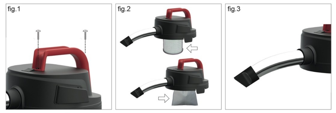 – Sapı, ambalajda bulunan vidaları kullanarak ürünün başlığına takın (şekil 1).