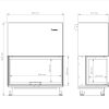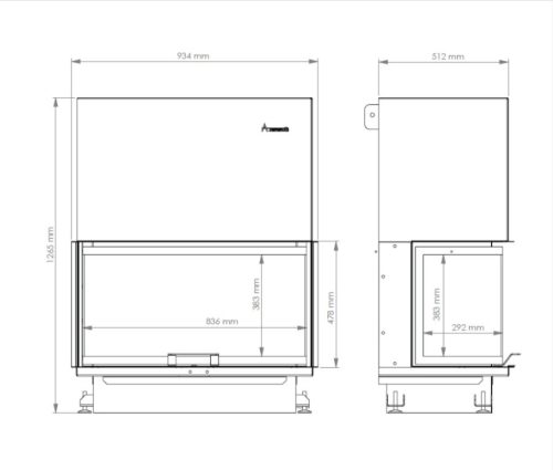 Ana cam cephe 836 mm cam ve 2 yan cephe 292 mm ölçülerindedir. Tüm camlı yüzlerin yüksekliği 383 mm ve pencerelerin yüksekliği, 3 taraflı bir şömine için piyasadaki en rekabetçi fiyatla.