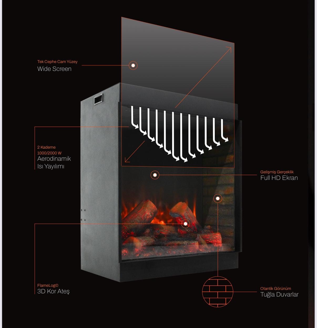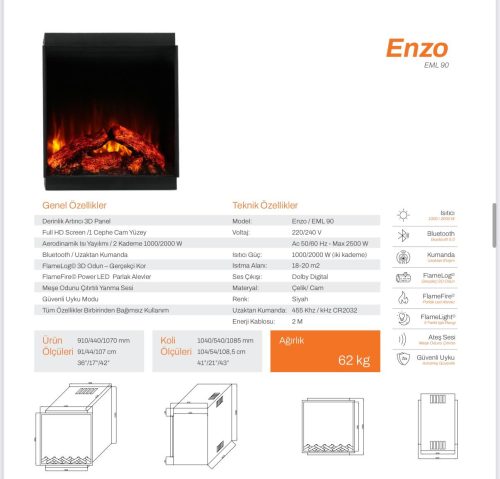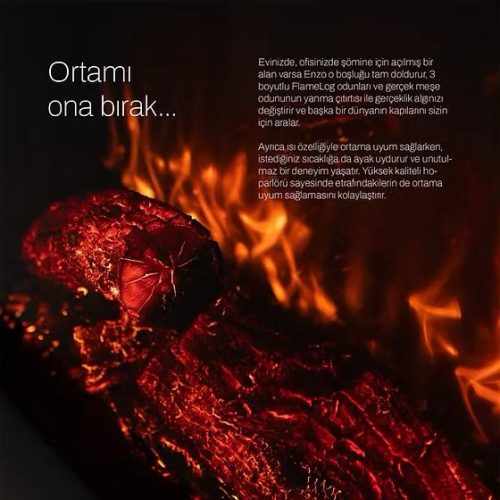 Evinizde, ofisinizde şömine için açılmış bir alan varsa Enzo o boşluğu tam doldurur, 3boyutlu FlameLog odunları ve gerçek meşe odununun yanma çıtırtısı ile gerçeklik algınızı değiştirir ve başka bir dünyanın kapılarını sizin için aralar.