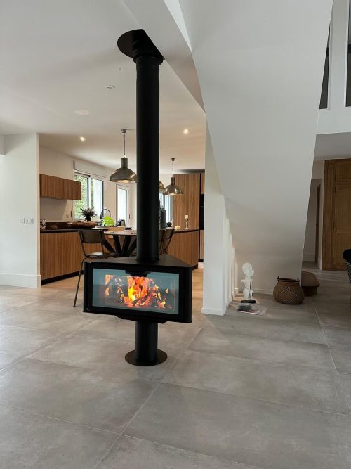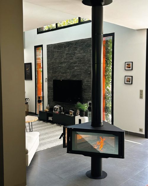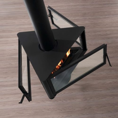 Born, üçgen şeklinde merkezi bir şöminedir. Üç tarafının cam olması ateşi harika bir şekilde görmenizi sağlar. Çağdaş ve sade bir tasarıma sahiptir. Minimalist ve zarif mekanlar için ideal bir seçenektir.