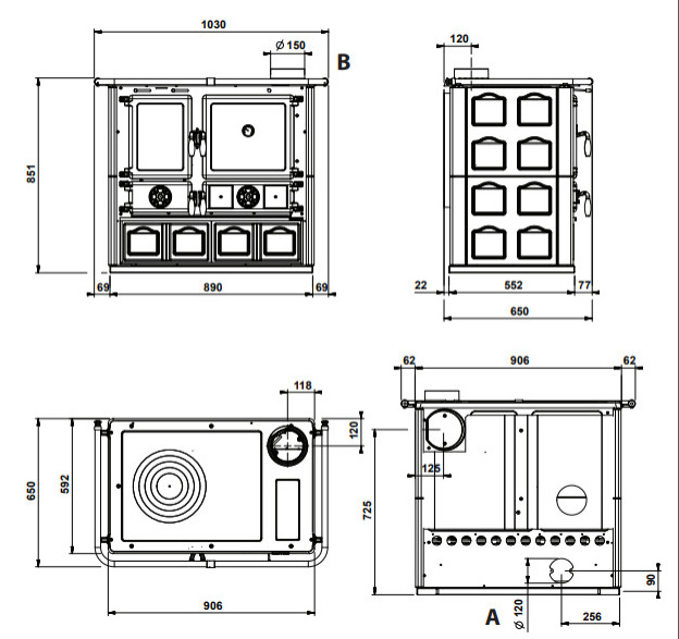 Özellikleri: Seramik dış kaplama • Parlak dökme demirden yanma kapıları • Emaye fırın 41 litre • Üst pişirme plakası ve cilalı dökme demirden halkalar • Refrakter ocak •Odun Kurutma çekmecesi