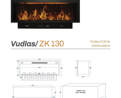 Vudlas K 130 cm 3 Boyutlu Elektrikli Şömine (Odunsuz ,Isılı, Ses Efektli)
